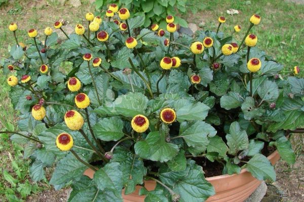 Акмелла (спилантес) - многолетняя, декоративная, лекарственная, пряная культура высотой не более 30 см с красивыми соцветиями. Выращивается в умеренной зоне в качестве однолетнего растения. Очень быстро растет и зацветает. Сорт используется для оформления цветников и бордюров, лекарственных садиков и вазонов. Листья  добавляют свежими в салаты, тушат с ними мясо, овощи.