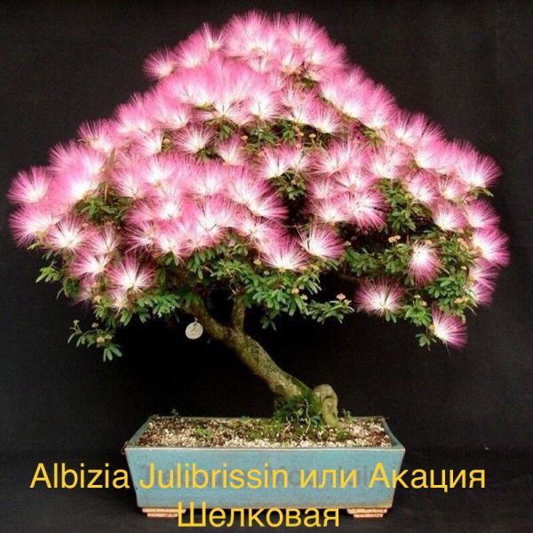 Albizia Julibrissin, Альбиция Ленкоранская или Акация Шелковая - невысокое листопадное дерево или кустарник с широкой раскидистой кроной в форме зонтика, рода Акация семейство Бобовые. Листья дважды перистые, ажурные, светло-зелёные, в длину достигают 30 сантиметров, ночью складываются.