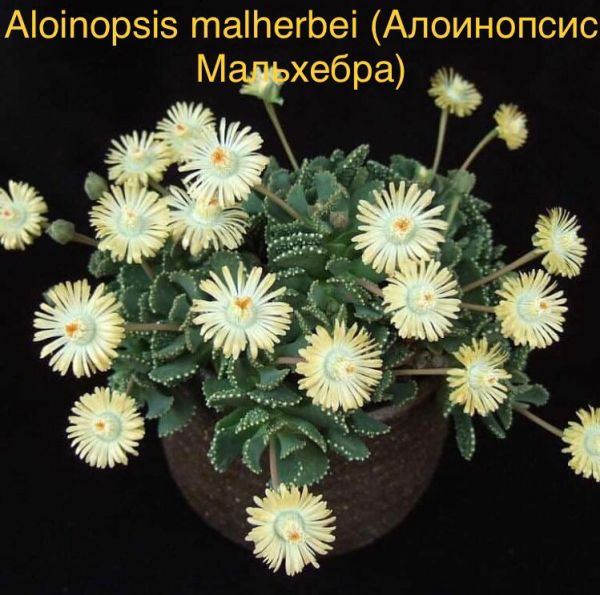 Алоинопсис— карликовое суккулентное растение, произрастающее в пустыне Карру (Капская провинция, ЮАР). Название рода переводится с латыни как «подобный алоэ». Алоинопсисы и в самом деле напоминают розеточные виды алоэ. Стебель обычно укороченный, а толстые, мясистые листья чаще всего собраны в рыхлую розетку, хотя некоторые виды более похожи на «живые камни». Листья, как правило, в длину до 4, в ширину 2,5 см; часто с тупым, как бы обрезанным кончиком; они гладкие или покрыты бородавочками. Цветки в диаметре до 4 см, появляются из центра розетки. Они обычно раскрываются на исходе дня и закрываются, когда стемнеет. Каждый цветок держится 5-8 дней. Алоинопсисы популярны в комнатной культуре и часто встречаются в коллекциях. У большинства видов длинный, утолщенный главный корень, поэтому их выращивают в высоких горшках. Каждая розетка состоит из 4-10 мясистых листьев, часто с килем на нижней поверхности, различных оттенков зеленого или голубовато-зеленого цвета, сплошь крапчатых.