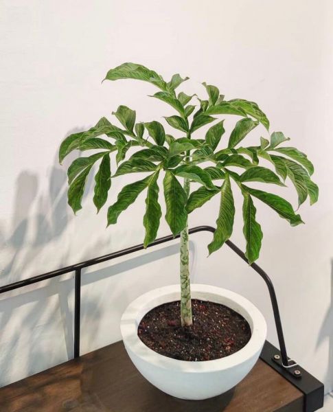 Аморфофаллус считается одним из самых необычных и интересных растений в мире. Известно и другое название цветка – «змеиное дерево». Это объясняется сходством ствола со змеиной кожей. Цветок же на деле вовсе не цветок, а единый лепесток сложной формы, который, как и ствол, покрыт пятнышками. Он окружает початок-стрелу, форма которого различается в зависимости от разновидности растения. Аморфофаллус имеет крупный и мощный стебель, напоминающий ствол пальмы, который растет из клубня. Еще одной отличительной чертой растения является единичная листовая пластина полуметрового размера. Ее расцветка зелено-коричневая с беловатыми точками. В центре располагается пустотелый черешок.
