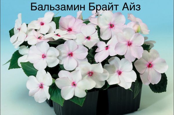 Бальзамин Брайт Айз - однолетнее неприхотливое растение. Куст шаровидной формы высотой 25-30 см и диаметром 20-30 см. Листья темно-зеленые. Растение усыпано крупными, диаметром 5-6 см, белыми цветами с розовым глазком. Цветение обильное продолжительное в течении всего сезона. Хорошо растет в полутени. Предпочитает легкие плодородные почвы. Достаточно влаголюбиво, но не переносит избыточного переувлажнения. Размножают семенами, посев которых производят в марте-апреле в рассадные ящики. Посевы засыпают влажным песком слоем 3 мм и поддерживают постоянную влажность, для чего емкость накрывают стеклом и ставят в хорошо освещенное место. Всходы появляются через 14-20 дней. После появления всходов, влажность субстрата и воздуха необходимо уменьшить, сняв покровное стекло. Сеянцы, достигнув высоты 1 см, пикируют в горшки по одному растению. На открытый балкон растения выставляют в середине мая. Можно выращивать как комнатное растение.