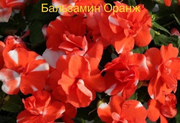 Однолетнее (в открытом грунте) неприхотливое растение. Куст шаровидной формы, высотой 25-30 см, усыпан очаровательными полумахровыми цветками темно-оранжевого цвета с белыми разводами. Гибрид обладает всеми необходимыми свойствами для профессионального озеленения: хорошо ветвится и образует аккуратный пышный кустик, обильно и продолжительно цветет. Бальзамин хорошо растет в полутени. Предпочитает легкие плодородные почвы. Достаточно влаголюбив, но не переносит избыточного переувлажнения.
