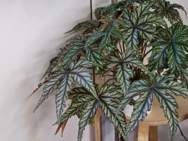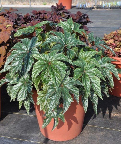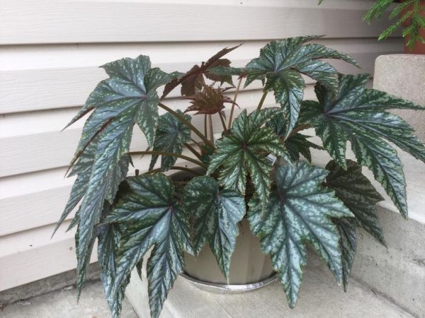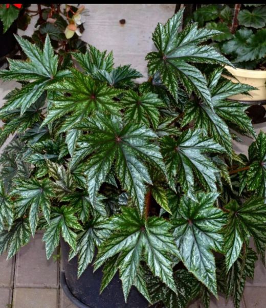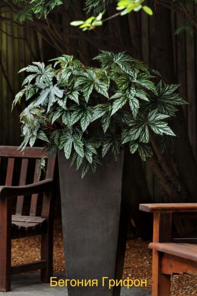 Бегония с огромными декоративными листьями потрясающей черной окраски с зелеными прожилками. Лист имеет форму, напоминающую распростертую лапу грифа.