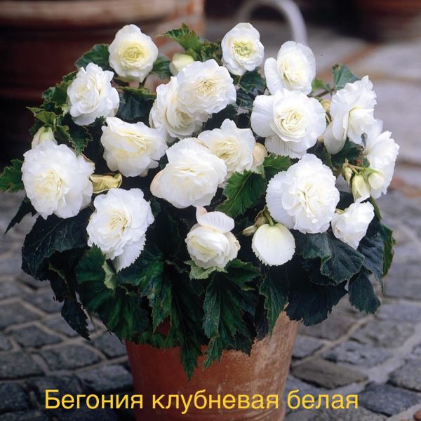 Бегония белая – достойный конкурент знаменитой королевы цветов розы. Роскошные белоснежные цветки невероятно крупные и густомахровые. Цветение без остановки, обильное и непрекращающееся. Культура представляет собой крепкий ровный куст около 25 см высоты. Мощные полупрозрачные побеги толстые и мясистые. Оригинальные листья с красно-бронзовым отливом эффектно оттеняют молочную белизну громадных супер махровых соцветий. Роскошное цветение продолжается с начала мая до середины осени. Успешно используется как горшечное растение для оформления садовых бордюров; интерьеров террас, веранд и помещений.