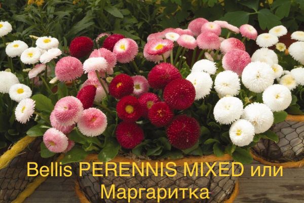 Bellis PERENNIS MIXED или Маргаритка Многолетняя - популярное неприхотливое красивоцветущее растение семейства Астровые. Широко разводится в цветниках и как горшечное растение на балконах и в комнатах.
