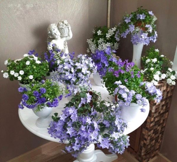 ПЕРВЫЕ 7-14 суток контейнер не вскрывать! ТЕРПЕНИЕ! Это очень важно для прорастания семян!Чтобы не было доступа воздуха, только в случае большого образования крупных капель на крышке быстро открываем протираем крышку и снова закрываем контейнер! После этого срока в торф таблетках и грунте Классман начинают появлятся первые всходы. В грунте всхожесть отмечается намного дольше. Вообще не выбрасывать посев семян кампанула контейнер до 3 месяцев, так как у семян у всех разные сроки от 5 суток до 3 месяцев. По мере подсыхания слегка опрыскиваем из пульвизатора быстро протираем влагу с крышки и плотно закрываем контейнер и ставим обратно под, лампу держим во влажном состоянии.С появлением 4-6 основных листочков сеянцам необходимо произвести пикировку из контейнера в маленькие пластиковые стопочки. Аккуратно деревянной зубочисткой пикируем саженцы каждый отдельно не повреждая корешки, далее накрываем сверху пакетом, создаем мини тепличку несколько суток регулярно понемногу проветриваем приучаем сеянцы к воздуху даем подышать и убираем излишнюю влагу, и только убедившись что пикировка прошла успешно только тогда можно снимать тепличку. За несколько месяцев сеянцы быстро подрастают наращивают хорошую корневую систему, иногда необходимо сделать еще перевалку в стаканы. В 5-6 месячном возрасте уже довольно хорошо развитые кустики можно переваливать в горшочки . Следим за влажностью почвы не допускайте перелива и высыхания грунта. Иногда можно опрыскивать НВ-101, Циркон,Эпин. Больше света и солнца. Если решили сеять в грунт рекомендуют хорошо прогреть землю так как много насекомых именно в грунте, сорняки могут прорастать. Внимательное соблюдение рекомендаций поможет вам вырастить сеянцы кампанула.