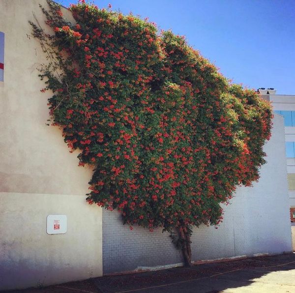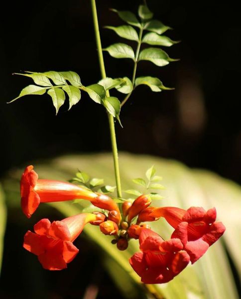 Campsis RADICANS или Кампсис Укореняющийся, Текома Укореняющаяся - крупная одревесневающая лиана с многочисленными воздушными корнями на стеблях, с помощью которых прикрепляясь к опоре и поднимается на высоту до 15 м.