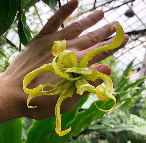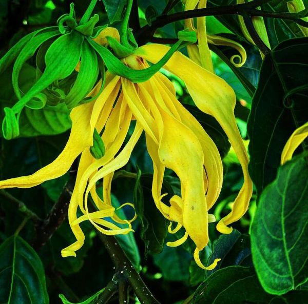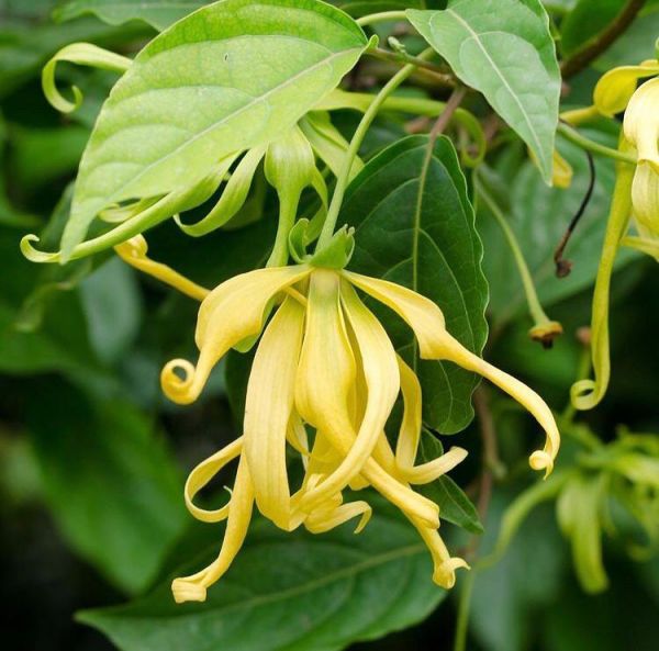 Глубокий и богатый запах цветков иланг-иланга напоминает жасмин и нероли. Считается, что аромат иланг-иланга оказывает успокаивающее действие, нормализует высокое кровяное давление, помогает при кожных проблемах, а также считается афродизиаком.