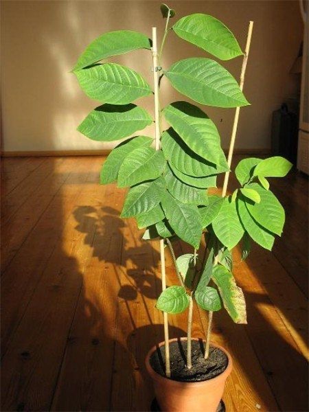 Плодоносит в домашних условиях в возрасте четырех-пяти лет. Плодоносят только непривитые сеянцы. В шестилетнем возрасте деревце уже начинает радовать хозяев двумя десятками вкусных и очень ароматных плодов. Срывать плоды необходимо тогда, когда они плотные и твердые. Чтобы определить спелость плода, его необходимо потрясти. У спелого плода характерный звук семян, отделившихся от мякоти. Самый спелый плод имеет приятный сладкий аромат.