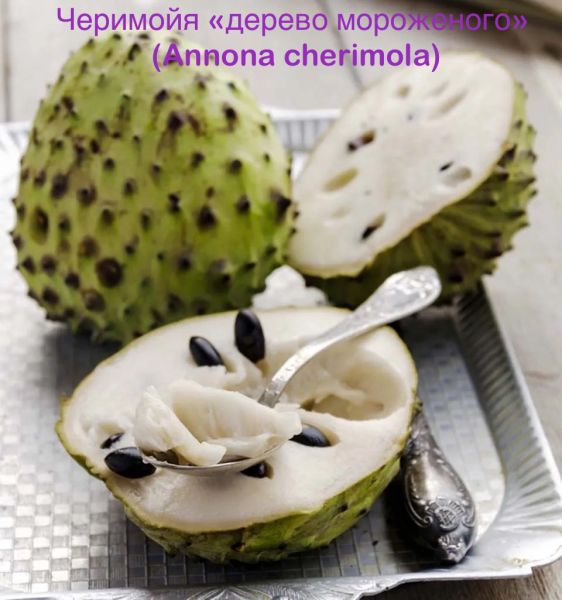 Чиримойя, Чиримола, Чирмолия, «дерево мороженого», «жемчужина Анд», сыча, золотое перуанское яблоко (Annona cherimola). Плодовое дерево высотой 5-9 м, семейства Анноновые (Annonaceae).