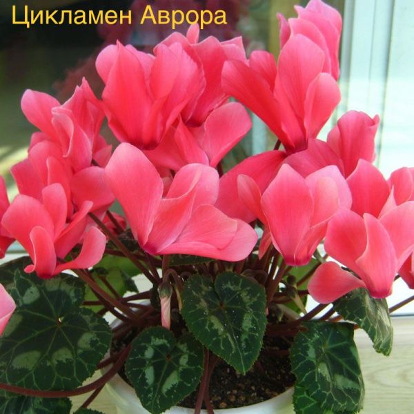Многолетнее клубневое растение семейства Первоцветные. Цветки светло-лососевой окраски. Длина цветоноса 15-20 см. Цветет с поздней осени до конца апреля, летом находится в состоянии покоя. Оптимальный срок посева конец августа. Семена цикламена туговсхожие, появления всходов приходится ждать от 1 до 3-х месяцев. Хорошо помогает контрастная термическая обработка: непосредственно перед посевом семена помещают на 2 сек. в горячую (+90...95°С) воду, затем на 2 сек. в холодную, операцию повторяют дважды. Посев производят в горшки с листовой и торфяной землей (1:1). Сверху семена присыпают слоем земли 0,5-1 см, обильно поливают, накрывают темной пленкой. При t +20°С всходы появляются через 30-40 дней. После появления всходов притенение снимают, температуру снижают до +15...17°С. Когда образуются маленькие клубеньки с двумя листочками, пикируют в ящики со смесью из листовой, торфяной земли и песка (2:1:0,5). При пересадках у молодых растений верх клубенька должен находиться у самой поверхности почвы (не глубже 0,5 см). У взрослых растений верх клубня обычно открыт. В период покоя сбрасывает листья.