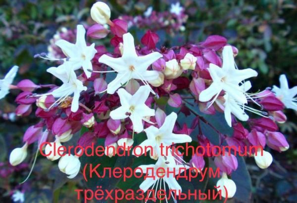 Клеродендрум. Без укрытия перезимует в южных регионах Украины и Кавказа. Цветёт в августе-сентябре.