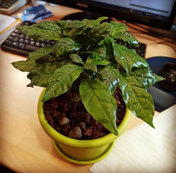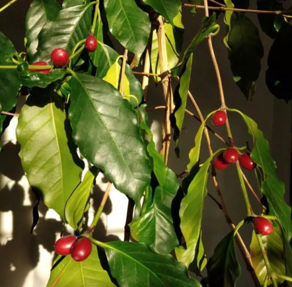 Размножение комнатного кофе семенами: Выдержите зерна в розовом растворе марганцовки 1 час. Зернышки раскладываются поверх грунта, плоской стороной вниз. Грунт должен быть слегка увлажнен. Время от времени опрыскивайте эту почву, но понемногу. Держите ящик в тепле. Первые ростки должны проклюнуться 1,5 - 2 месяца после посева.
