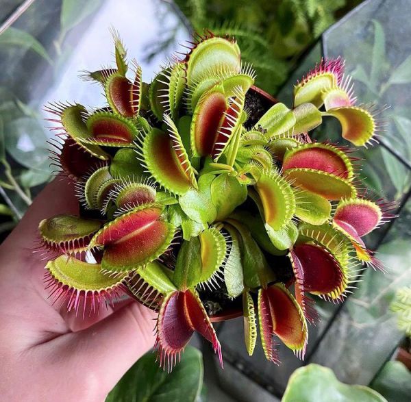 Дионея Мусципула - единственный вид в роде. Дионея - многолетнее травянистое насекомоядное растение с коротким подземным стеблем. Стебель —луковицеобразный ризом. Цветет белыми нежными цветками, собранными в соцветие на высоком цветоносе. Для получения семян, опылять цветки надо вручную. Листья размером от трёх до семи сантиметров, но у сортовых крупнорослых Дионей они бывают больше, а у миниатюрных - еще меньше. Также размер меняется в зависимости от времени года. Растёт в почвах с недостатком азота, таких как сфагновые болота. Недостаток азота является причиной появления ловушек: насекомые служат источником азота, необходимого для синтеза белков. Венерина мухоловка — член немногочисленной группы растений, способных к быстрым движениям. Листья удлиненные, на конце сформирована хлопушка состоящие из двух створок по краям которых расположены зубчики. На поверхности этих пластинок располагаются чувствительные волоски, которые реагируют на жертву и дают команду к схлопыванию ловушки. После закрытия ловушки, выделяется сок и начинается процесс переваривания, который в зависимости от размера насекомого может длится от нескольких дней до нескольких недель. Каждая ловушка срабатывет несколько раз (примерно 4-7 раз), а потом отмирает. К зиме, в прохладе, Венерина Мухоловка впадает в период покоя, прекращает свой рост и создается впечатление, что она погибает или замирает. Засохшие листочки можно удалять и осторожно поливать растение, весной она вновь пойдет в рост.