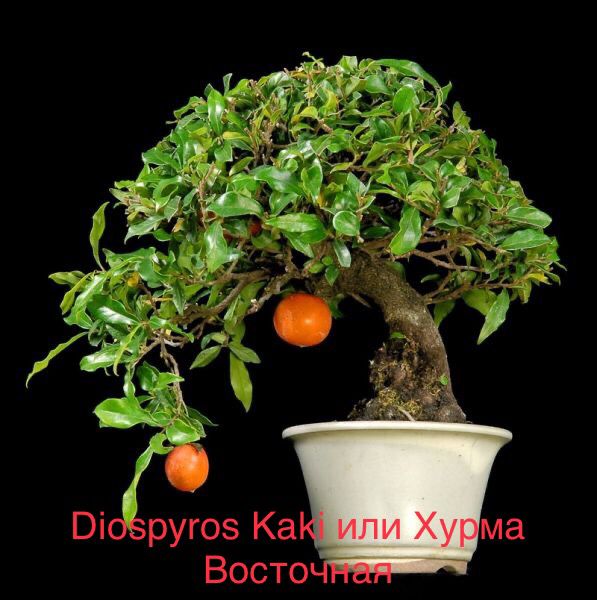 Подходит для формирования в стиле бонсай. Хурма Восточная (лат.Diospyros Kaki), имеет так же названия Хурма Китайская или Хурма Японская - полулистопадное дерево или кустарник семейства Эбеновые. Произрастает в субтропических районах Азии, ареал простирается от Японии через Китай до Индии. Это дерево славится целебными свойствами плодов и листвы, плоды богаты витаминами и микроэлементами, листву используют как противокашлевый и противодиорейный отвар.