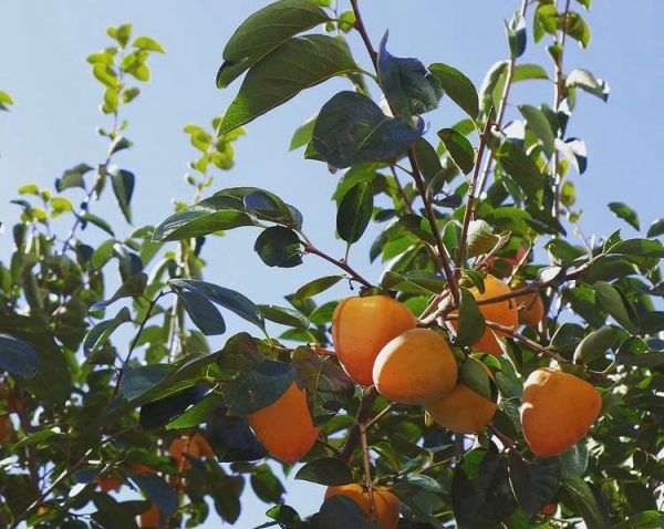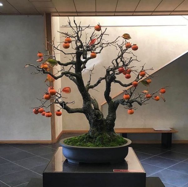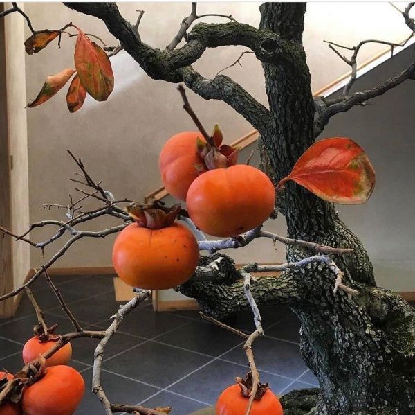 Листья у хурмы темно-зеленые, которые перед ноябрем краснеют, а после ноября Хурма продолжает радовать глаз своими яркими оранжевыми плодами, которые долго еще висят на дереве, придавая интерьеру вид экзотичности и элегантности. Может быть выращена в стиле Бонсай. Посев семян Хурмы: