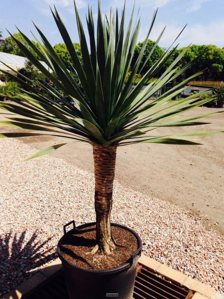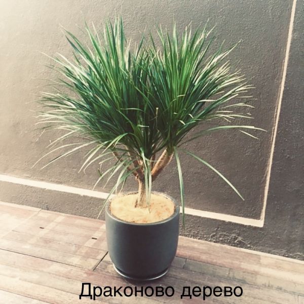 до полутора метров. Ствол прямой, листья кожистые, линейно-мечевидные, серовато-зеленые с голубоватым оттенком до 45 см длиной и 2-3 см шириной. Этот вид считается одним из самых выносливых. Полив производят по мере высыхания верхнего слоя почвы. Зимой растение может зимовать при пониженных температурах и умеренных поливах. Драцена отлично переносит сухость воздуха, но отзывчива на теплый душ или опрыскивание.