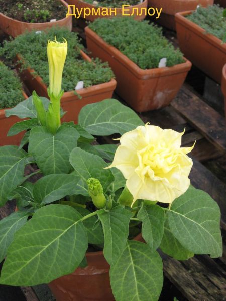 Сказочно-прекрасные махровые «граммофоны» цветов. Многолетнее травянистое растение, выращиваемое как сезонный однолетник. Высота 50 см. Листья светло-зеленые, сердцеобразные с опушением. Крупные воронковидные цветы. Цветение обильное и продолжительное, фаза цветения начинается через 3-4 недели после всходов. Используют для клумб и в одиночных посадках, как контейнерное растение.