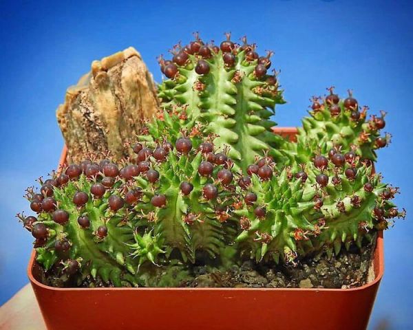 Эуфорбия — суккулент, принадлежит семейству Молочайные. По всему земному шару распространены представители этого рода, пятая часть которых встречаются практически только в Центральной и Южной Африке. В средней полосе России в дикой природе также растут молочаи. Их можно встретить на полях, у дорог, по берегам рек. Следует помнить, что все виды молочаев содержат млечный сок. В млечном соке содержатся ядовитые вещества, которые могут вызвать ожоги, воспаление слизистых оболочек глаз, носа; при попадании в желудок млечный сок может вызвать нарушение функций желудочно-кишечного тракта.