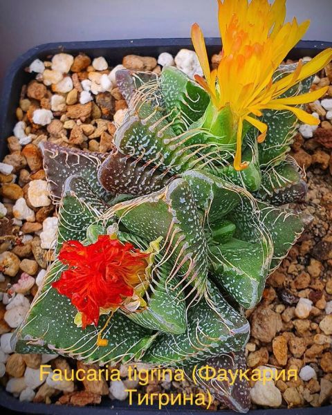 Фаукария тигровая представляет собой небольшое многолетнее растение. Однако, её внешний вид, мало кого оставит равнодушным. От цветка очень сложно отвести взгляд и перестать им восхищаться. Небольших размеров суккулент, выглядит впечатляюще: маленькие толстые листья, напоминающие пасти хищника, полные острых клыков, словно защищают нежное цветение.