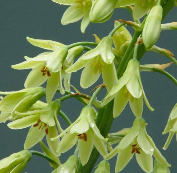 Стебли этого растения поднимаются над поверхностью почвы на 1 м. Каждый из них несет от 10 до 30 изумрудно-зеленых цветков. При горшечном культивировании цветоносы получаются намного ниже.