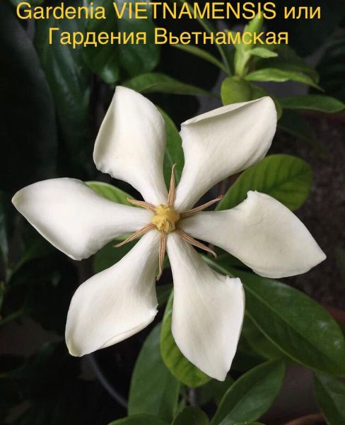 Gardenia VIETNAMENSIS или Гардения Вьетнамская - быстрорастущий, вечнозелёный, многоствольный кустарник с тонкими побегами высотой до 1 м. Листья продолговатые ланцетные, тёмно зелёные, цельнокрайние. Цветки кремовые, одиночные, с узкими, длинными лепестками, имеют сладковатый аромат, который усиливается в вечерние и ночные часы. Семейства Мареновые (Rubiaceae).