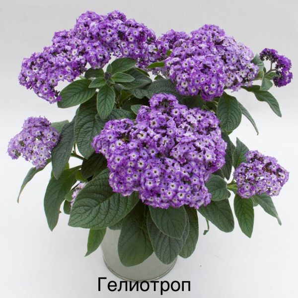 Компактное декоративное растение высотой 25 см, яркие соцветия которого источают душистый аромат. Цветки мелкие, темно-синие или темно-фиолетовые, собраны в щитковидные соцветия диаметром 10-15 см. Цветет обильно и продолжительно с июня до осенних заморозков. Листья темно-зеленые, с пурпурным оттенком, обратно-яйцевидной формы. Хорошо развивается и зацветает в год посева. В озеленении гелиотроп хорош как ковровое растение на бордюрах и клумбах, где он прекрасно сочетается с сальвией, клубневой бегонией и петунией, а также очень декоративен в горшках, в которых обычно формируется в виде небольшого деревца на штамбе.