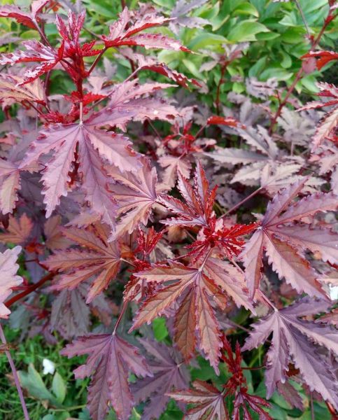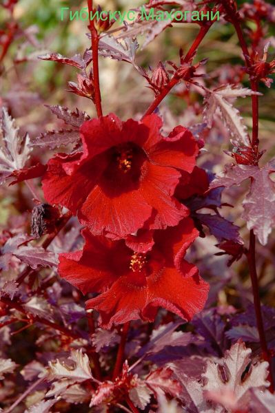Эффектная разновидность гибискуса от американской компании с бордовыми кленовидными листьями. В комнатной горшечной культуре высота растения не превышает 90 см (ширина до 75 см), а в открытом грунте южных регионов достигает 1,5 м. В средней полосе в садовых цветниках выращивается как однолетник, растение погибает при -10°С. Поэтому практичнее использовать вазоны и с наступлением холодов сохранить полукустарник в качестве домашнего растения. Но при таких переменах листья могут на время утратить яркость и приобрести зеленовато-рыжий оттенок. Сорт устойчив к жаре и засухе, при этом отлично растет и у различных водоемов.