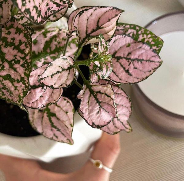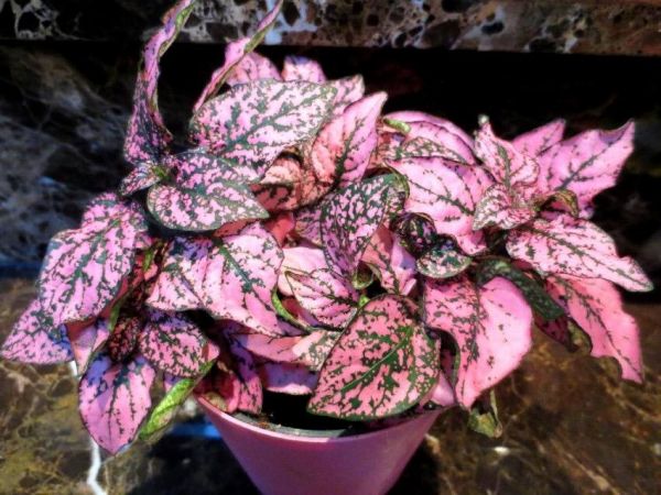 Изумительное яркое неприхотливое растение, декоративность которому придают мягкие листья, сплошь покрытые цветными розово-сиреневыми пятнышками с темно-зелеными прожилками.