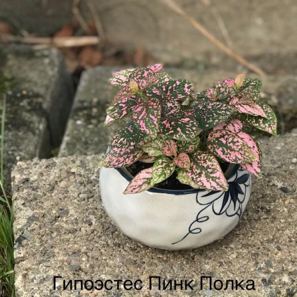 Самое распространенное комнатное растение с привлекательными пятнистыми листьями. Кустики компактные, при регулярном прищипывании не превышают 20 см в высоту. Цветение не представляет декоративной ценности, поэтому цветки нужно регулярно удалять. Гипоэстес прекрасно смотрится в композиции с другими комнатными растениями. Можно использовать в качестве одно летнего растения, выращивая в клумбах и бордюрах.