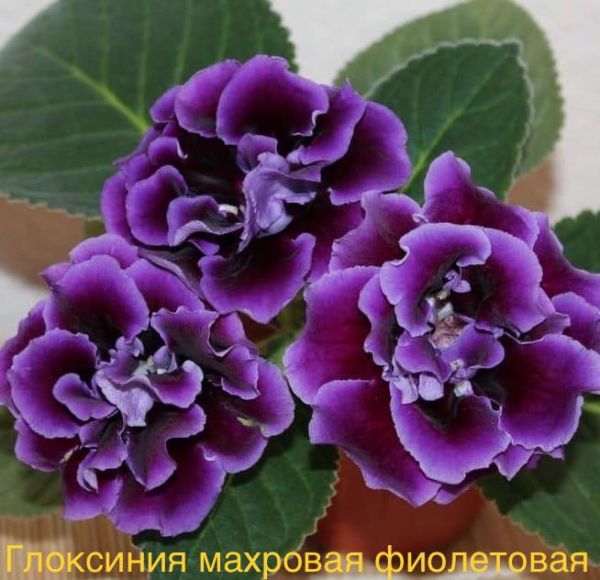 Глоксиния это комнатное растение, высотой 10-15 см с махровыми ярко-фиолетовыми цветами. Окраска густая, бутон плотный, многослойный. Оптимальный диаметр горшков для посадки растения 10-12 см. При высаживании семян используют субстрат из трех составляющих: