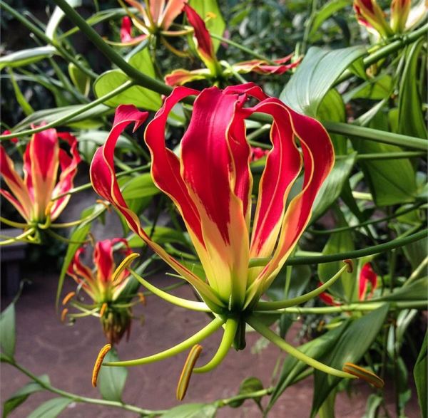 Глориоза теплолюбивое растение, предпочитает солнечные места с притенением в полуденные часы.