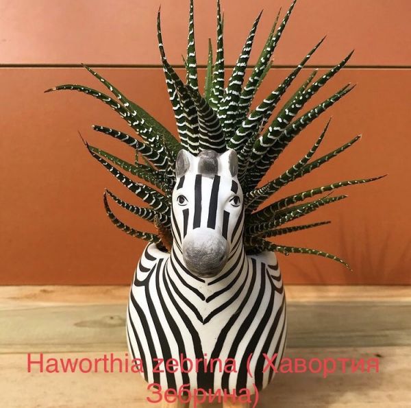 Хавортия Зебрина - один из самых крупных видов хавортий и выглядит как миниатюрное алоэ. При правильном уходе может дожить до 30-40 лет. Розетка практически бесстебельная, компактная.