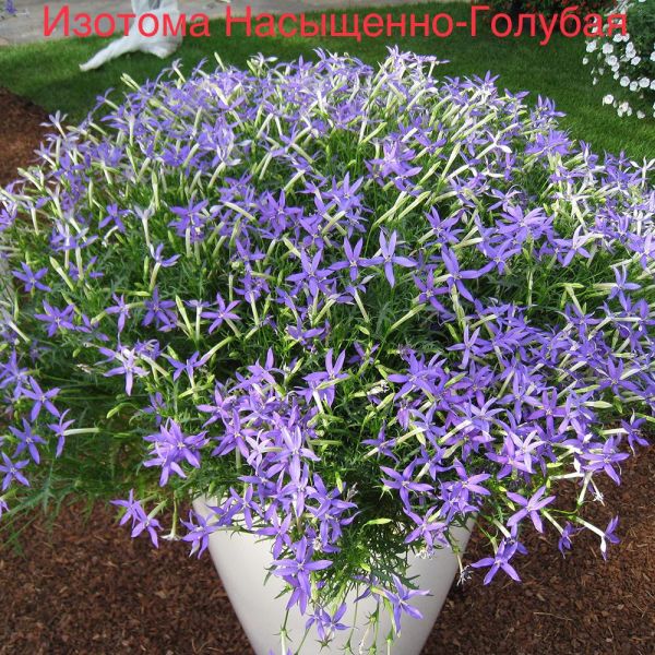 Звёздный кустик. Скромное, нежное, очень изящное и невзыскательное растение освежит прохладой лоджию, уютно разместится в кашпо или подвесной корзине, украсит бордюр, оттенит цветник. Теплолюбивое многолетнее растение хорошо чувствует себя в комнатной культуре, в садовом дизайне используется как однолетник. Зацветает через четыре месяца после посева, в открытом грунте цветёт всё лето до осенних заморозков. Цветки небольшие, 1,5-3,0 см в диаметре, ажурные, пятилепестковые, белые, розовые или голубые звёздочки. Кустик сильноветвистый, компактный, шарообразный, высота и диаметр 15-25 см. Светолюбива, хорошо растёт на лёгких дренированных почвах, не любит переувлажнения. «Насыщенно-голубая» - миниатюрная планета, окружённая сине-лилово-голубым облаком порхающих, как мотыльки, цветков.