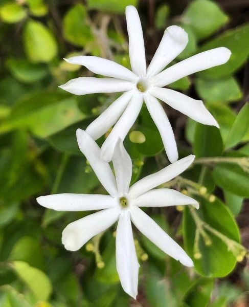 Этот ползучий вечнозеленый кустарник можно выращивать на солнце или в полутени. У него перистые листья и множество белых, сильно пахнущих, звездообразных цветов. Естественным образом встречаются в Восточной Азии. Диаметры стеблей до 4 см. Обычно растет как одревесневающая лиана, но может цвести и плодоносить как кустарник. Жасмины это листопадные и вечнозеленые кустарники, одревесневшие лианы с тройчатыми непарноперистыми, редко простыми листьями. Цветки одиночные или в конечных малоцветковых метелках. Венчик блюдцевидный с длинной цилиндрической трубкой, с 4-6 – раздельным отгибом, с черепитчато налегающими друг на друга долями.