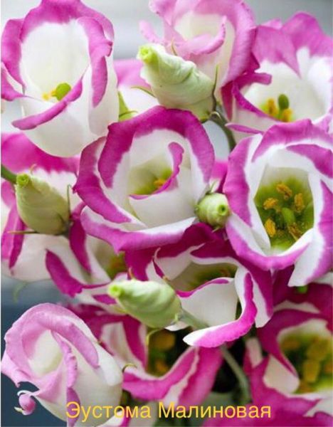 Нежное однолетнее растение из семейства Горечавковые. Романтичная серия создавалась японскими селекционерами для срезки. Небольшой аккуратный простой цветок белого цвета с малиновой каймой по краю лепестков на длинном (80-100 см) прочном стебле смотрится в букетах трогательно и изящно. Предпочитает солнечные места, окультуренную почву, регулярные поливы и опрыскивания. Для получения цветущих растений в июле-августе посевы проводят в конце февраля-начале марта. Семена мелкие, их не присыпают, оставляя на поверхности субстрата, увлажняют из распылителя и накрывают стеклом. Всходы появляются через 10-15 дней при температуре +20-21°С. Необходим свет. Сеянцы пикируют в стадии 2-3-х настоящих листьев в отдельные горшки. В грунт высаживают, когда минует угроза заморозков. Используют для украшения клумб, рабаток, бордюров и срезки.
