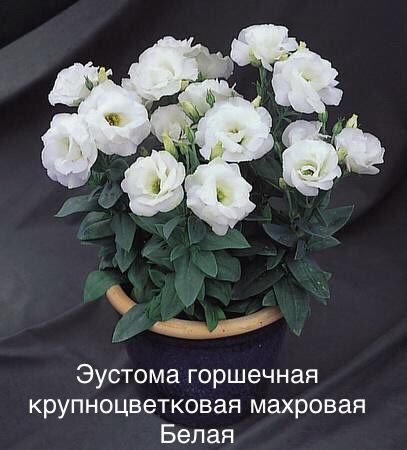 Потрясающе нарядная генетически низкорослая эустома японской селекции! Крупные, диаметром до 7 см махровые цветы фантастически смотрятся на невысоких, 20-25 см кустиках. Растения отлично ветвятся не требуя прищипки. Цветение очень длительное бутоны формируются и распускаются постепенно. В доме эустома может жить 2-3 года, в открытом грунте ее выращивают как однолетник. Первые месяцы растения развиваются крайне медленно. Они не любят травм корневой системы (предпочтительна перевалка, а не пикировка). Уход состоит в своевременных поливах, подкормках и, при горшечной культуре, перевалке в более просторную емкость. Лучше всего растения цветут в легком, рыхлом, воздухопроницаемом грунте с нейтральной реакцией pH.