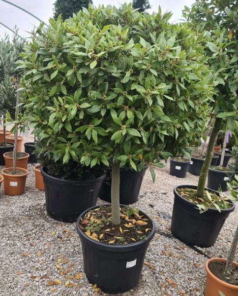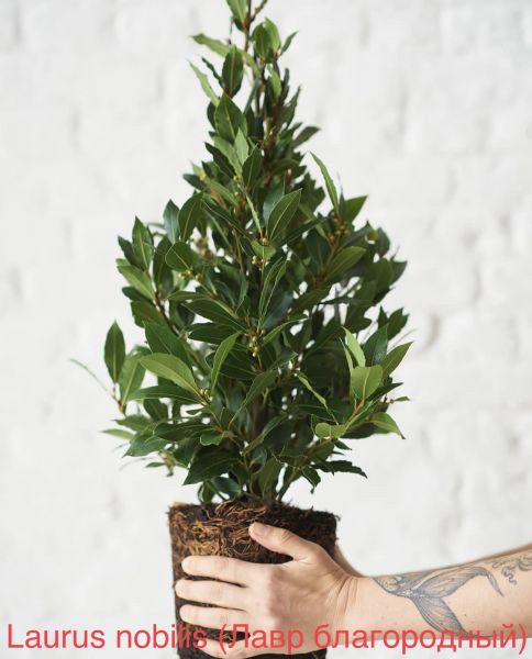 Лавр благородный — многолетний куст или дерево с густой кронойДерево в высоту может достигать 8–10 м. В лесах иногда встречаются деревья высотой до 18м. Ствол дерева в диаметре до 40 см., покрыт тёмно-серой корой. Крона густая и имеет пирамидальную форму. Листья на коротких черешках, простые, очередные, кожистые, блестящие, цельнокрайние, имеют продолговатую форму, кверху заострённые, а к основанию суженные. Сверху они тёмно-зелёные, а снизу более светлые, с хорошо заметным пёристым жилкованием, слегка волнистые по краю. Имеют сильный характерный запах.