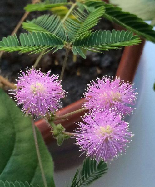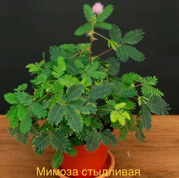 Красивоцветущее, декоративно-лиственное, горшечное растение семейства бобовых. У мимозы стыдливой лёгкая перистая листва и розовые округлые пушистые цветки. Если вы нежно прикоснётесь к листьям, похожими на листья папоротника, они мгновенно сложатся, прижавшись к черешку, который наклонится вниз. Если растение не трогать, то через некоторое время листочки постепенно раскроются и растение примет свой прежний вид. Именно эта потрясающая реакция листьев и дала растению название. Мимозу очень легко размножать семенами: неглубоко посадите семена в смесь из равных частей земли, торфа и песка, почва всегда должна быть влажноватой, поддерживайте температуру на уровне 18-20 °C и проветривайте помещение. Через 4-6 недель появятся всходы. УХОД: По мере того, как корни начинают вылезать из дренажных отверстий, пересаживайте мимозу весной, каждый раз увеличивая размер горшка, пока не дойдёте до горшка диаметром 15 см. Затем каждый год заменяйте поверхностный слой земли более свежим. Растение хорошо переносит жару, но только в хорошо проветриваемом помещении. Держите горшки в очень светлом месте, можно даже на солнце, но не в самые жаркие часы. Поливайте так, чтобы почва всегда была влажной, каждые 2 недели добавляйте в воду для полива жидкое удобрение. Осенью и зимой мимоза должна стоять на самом солнечном месте, но не на сквозняке, температура не должна опускаться ниже 13С. Время от времени поливайте так, чтобы почва высыхала между поливами.