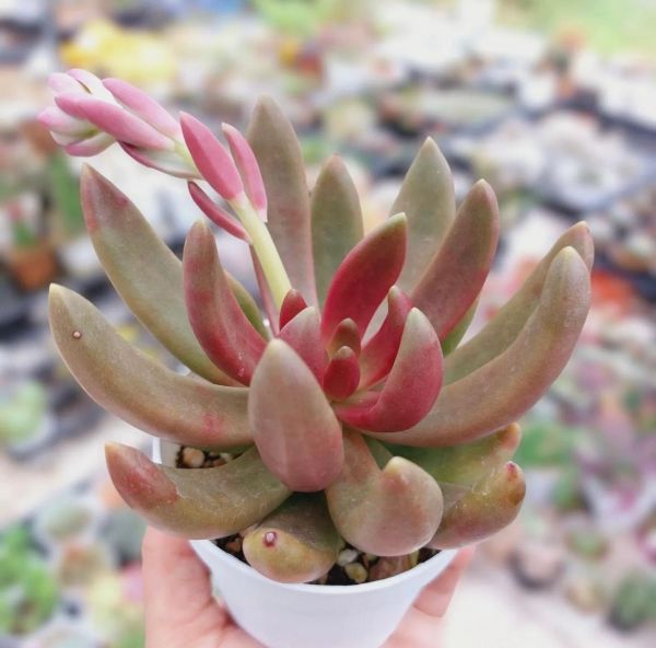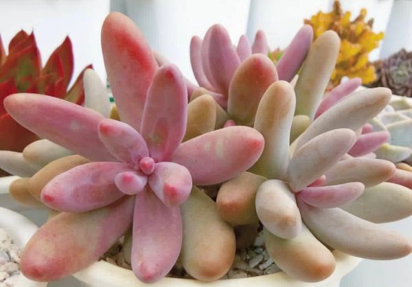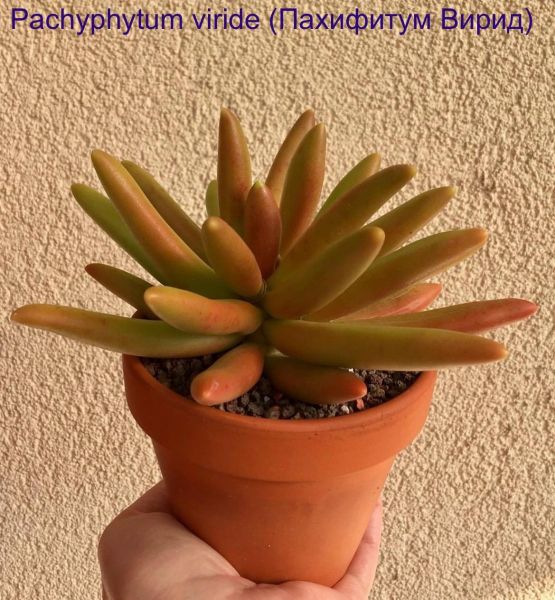 Пахифитум представляет собой род суккулентных растений из семейства Толстянковых. Общей чертой всех его базовых разновидностей являются толстые, очень сочные листочки небольшого размера и округлой формы. Она может меняться у разных видов от практически круглой яйцевидной до плоской или граненой. Окрас их варьируется в пределах светло-серого, сизо-голубого, бледно-зеленого и неярко пурпурового цвета. Сверху листья покрыты светлым восковым налетом, который еще больше приглушает их базовую окраску.