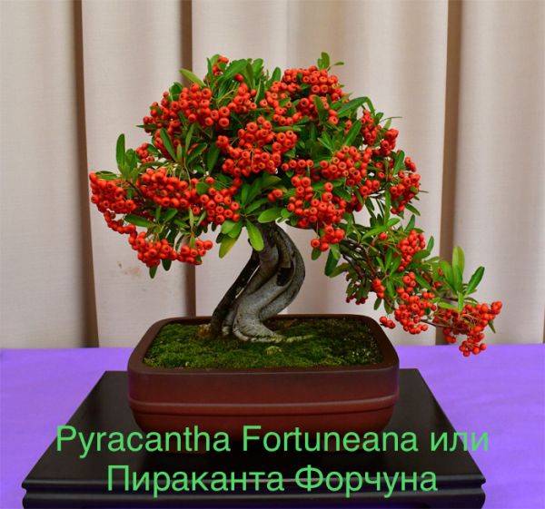 Pyracantha Fortuneana, Пираканта Форчуна или Огненный шип – многолетний вечнозеленый кустарник с длинными шипами. Весной растение сплошь покрыто бело-кремовыми душистыми цветами, а осенью и зимой – блестящими ягодами, красного, оранжевого или желтого цвета. Пираканта нетребовательна в уходе и отлично поддается выращиванию в открытом грунте в регионах с мягким климатом, а в более холодных зонах – в качестве горшечного растения или бонсаи.
