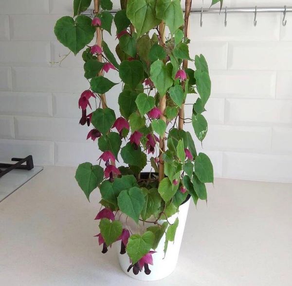 Популярная лиана из Мексики. Вечнозеленое лазающее растение, достигающее в длину до 3 метров. Интересные цветки до 5 см в длину, представляющие собой трубчатые венчики, окруженные пурпурными лепестками в форме колокольчика, сплошь покрывают всю лиану.