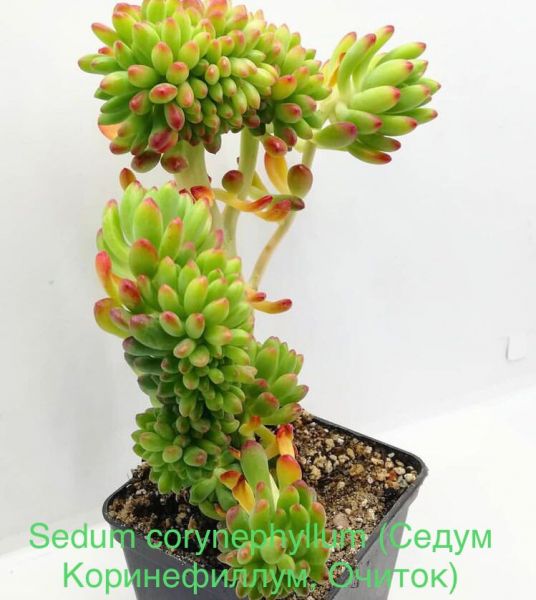 Седум – это травянистое суккулентное низкорослое растение. Все виды очитков можно условно разделить на две группы. В первую входят теплолюбивые виды, которые в условиях нашего климата выращиваются в комнатных условиях как многолетники или как однолетние культуры в открытом грунте. Во вторую группу входят морозоустойчивые почвопокровные многолетние виды очитков. В России в естественных условиях они произрастают, в основном, на Кавказе. Стебли у очитков довольно разветвленные и, при разрастании, образуют пышный кустарник или полукустарник. Их листья очень плотные. Они сидячие, не имеют черешков, хорошо прилегают прямо к мясистым стеблям. Листовые пластины, мясистые, цельные, расположены поочередно. Они бывают супротивными или мутовчатыми. Кроме того — форма листовой пластины, ее окрас и размер у разных видов седума сильно разнятся. Встречаются экземпляры с раздутыми, как цилиндрики, или с плоскими, как диски, листочками. Окрашены листовые пластины не только в традиционный зеленый цвет, но и в розовый, серый, сизый, красноватый и другие. Причем, окраска листьев зависит не только от сорта или вида очитка. Даже один и тот же вид может отличаться расцветкой листвы, если заметно отличаются условия его произрастания. Состав почвы в горшке также влияет на окраску листьев. Перекорм приводит к блеклости красок. Иногда на листиках очитка появляются красноватые разводы. Разными бывают и соцветия: боковые и верхушечные, по форме – щитковидные, зонтиковидные и кистевидные. Цветочки в соцветиях обоеполые, звездчатой формы, разнообразной окраски: красные, желтые, белоснежные, голубые. Лепестки очень плотные, слегка отогнутые. При разрастании они срастаются в узкую трубку, из которой выглядывают многочисленные тычинки и завязь. Цветет очиток в любое время года в зависимости от вида и сорта. Чаще всего в конце лета либо осенью. Это медоносное растение. Цветки настолько приятно пахнут, что привлекают своим ароматом не только людей, но и многочисленных насекомых-опылителей: бабочек, шмелей, пчел.