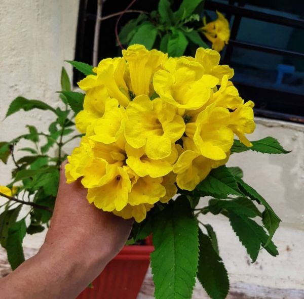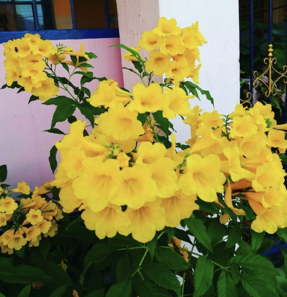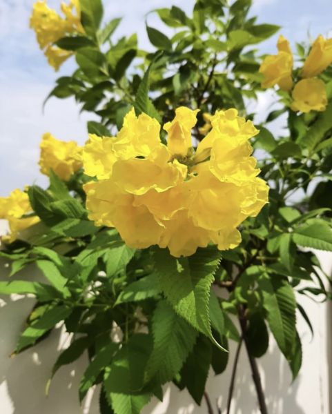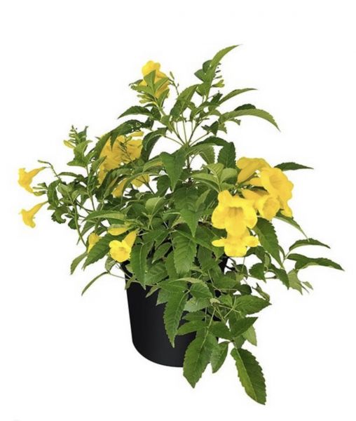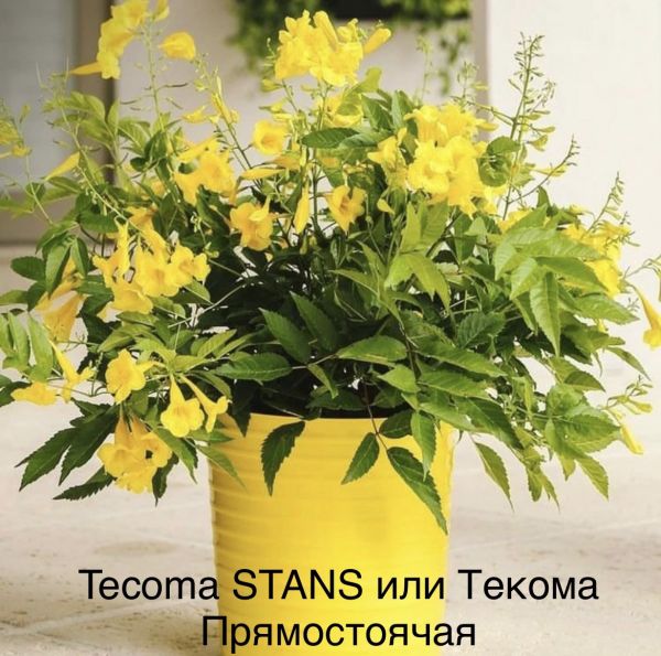 Tecoma STANS или Текома Прямостоячая - редкое и очень привлекательное растение, которое все лето буквально усыпано букетами ярких желтых колокольчиков. Представляет собой небольшое быстрорастущее деревце либо кустарник со сложными непарноперистыми листьями, состоящими, как правило из 5, реже 7 ланцетовидных зубчатых по краям листков размером около 7х2 см.