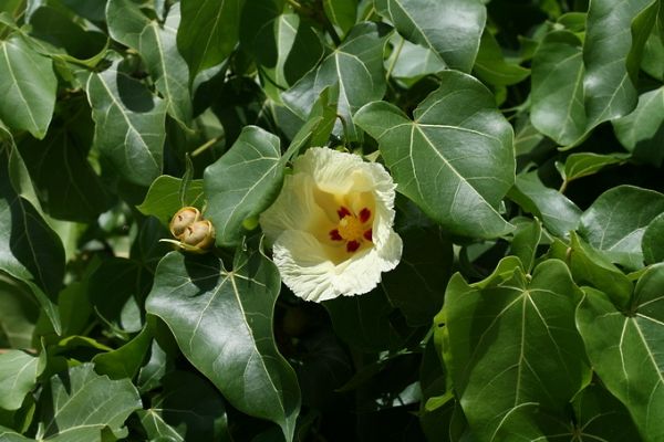 Красивоцветущее вечнозеленое тропическое растение с компактной кроной. Относится к семейству Мальвовые. Листья глянцевые, зеленые, сердцевидные, остроконечные, до 12 см длиной. Цветки колокольчатые, пятилепестковые, желтые с красно-коричневым глазком, окрашивающимся позднее в красно-фиолетовый цвет, 5-8 см в диаметре. Плоды оригинальные, сферические, с 8-15 семенами. Растение очень теплолюбивое и светолюбивое, для его выращивания предпочтительней окна южной экспозиции, высокая влажность воздуха, которую необходимо поддерживать частыми опрыскиваниями. Температура содержания зимой не должна опускаться ниже 16-17 °C. Семена крупные, в жесткой оболочке, перед посевам им необходима скарификация. Ее производят с помощью наждачной бумаги или острого предмета осторожно, чтобы не повредить зародыш семени. Семена предварительно замачивают на 1-2 часа, затем помещают в грунт, состоящий из перлита, песка и торфа в равных пропорциях. Глубина посева составляет 2 диаметра семени. Накрывают плёнкой, проращивают при температуре не ниже +25 градусов. Всходы появляются на 14-28-й день. Подросшие растения высаживают в горшки с почвогрунтом, состоящим из 2 частей дерновой, 1 части листовой земли с добавлением песка. Используют для озеленения светлых интерьеров.