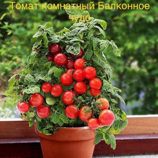 Балконное чудо - раннеспелый (90 дней от всходов до плодоношения), низкорослый (30-40 см), компактный сорт. Растение не требует подвязки и пасынкования. Плоды округлой формы, массой 20-30 г, очень сладкие и сочные, прекрасно подойдут для свежих салатов и консервирования. На рассаду семена высевают в начале-середине апреля.
